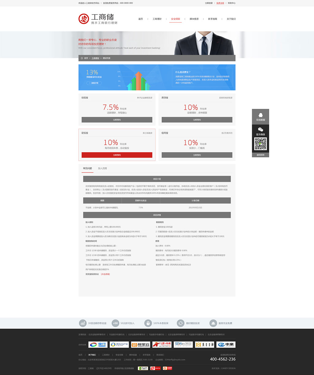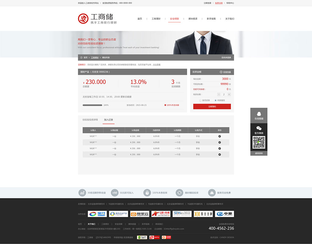 “工商储”互联网金融平台(www.gongshangchu.com)组建于2015年6月,公司的核心成员均是来自于银行、资管行业及电子商务等领域的精英骨干。采用创新的互联网金融模式,通过严谨、专业的操作规范和流程,共同打造最安全、专业、规范的互联网金融产品交易平台。