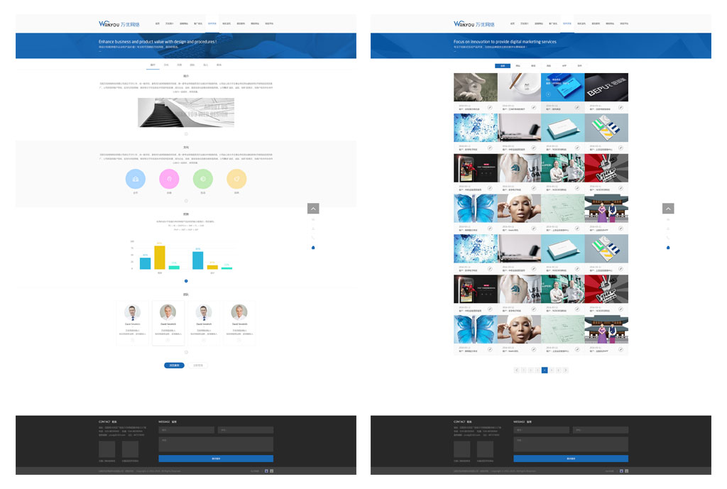 沈阳万优网络科技有限公司成立于2011年,由一批年轻、富有活力的网络精英所组成,是一家专业网络服务及行业解决方案提供商。公司全心致力于企事业单位网站建设和电子商务的应用及推广。公司将坚持客户导向、应用为本的策略,继续专注于在信息技术领域开拓发展,成为企业、政府、家庭信息化的推动者和服务者。公司秉承"诚信、诚实、创新"的理念,与客户和合作伙伴齐心协力一起成长,共同发展。