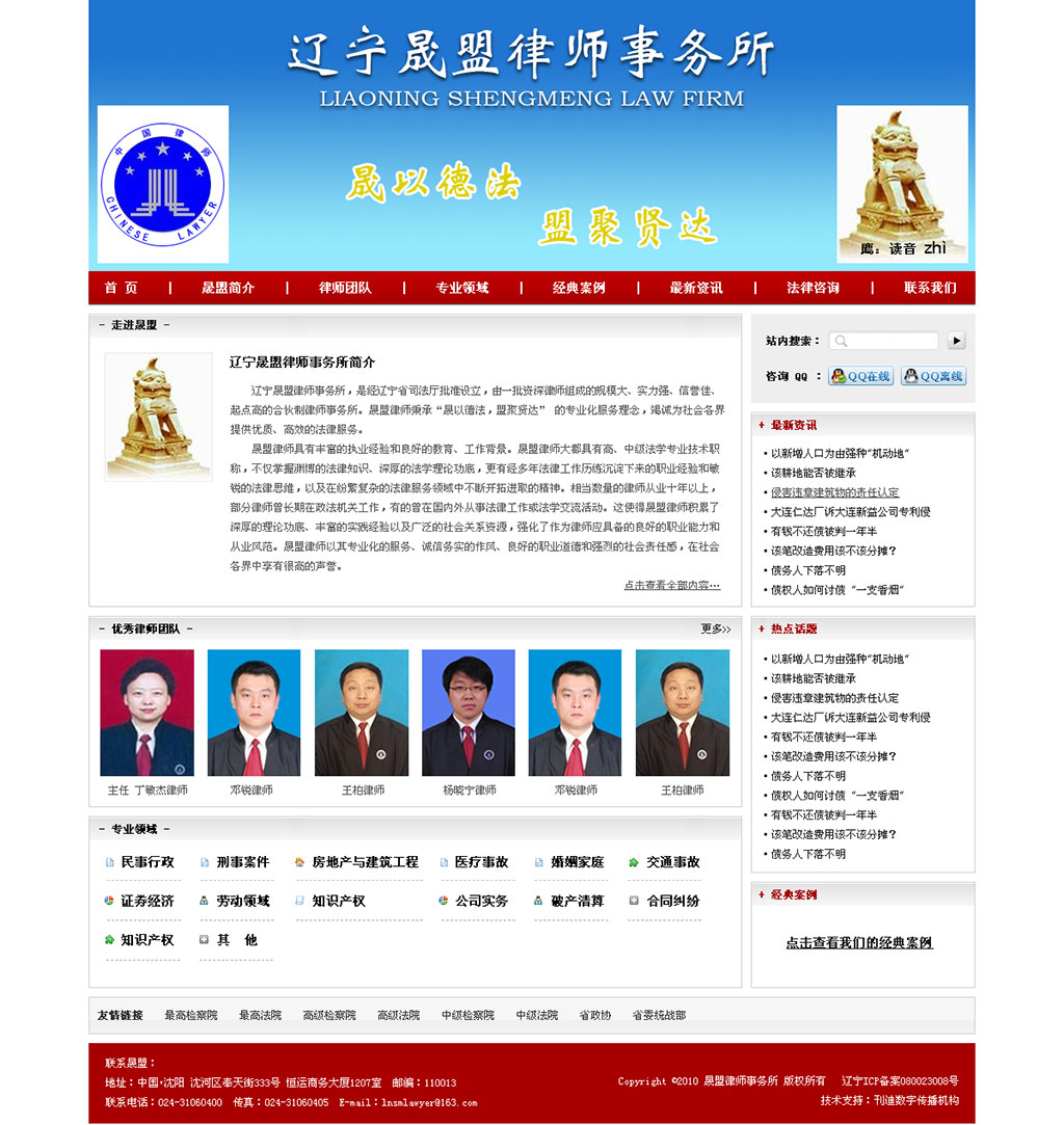 辽宁晟盟律师事务所,是经辽宁省司法厅批准设立,由一批资深律师组成的规模大、实 力强、信誉佳、起点高的合伙制律师事务所。晟盟律师秉承“晟以德法,盟聚贤达的专业化服务理念,竭诚为社会各界提供优质、高效的法律服务。